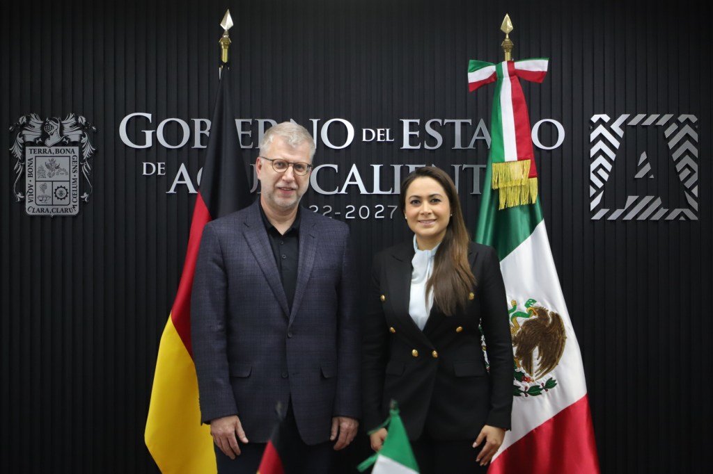La gobernadora Tere Jiménez se reunió con Michael Goebel, presidente y director ejecutivo de Mercedes-Benz US International, a quien le expresó que en Aguascalientes se trabaja para garantizar un entorno de paz social, seguridad y sobre todo certeza jurídica, que facilite la instalación y el crecimiento de los proyectos productivos en el estado.