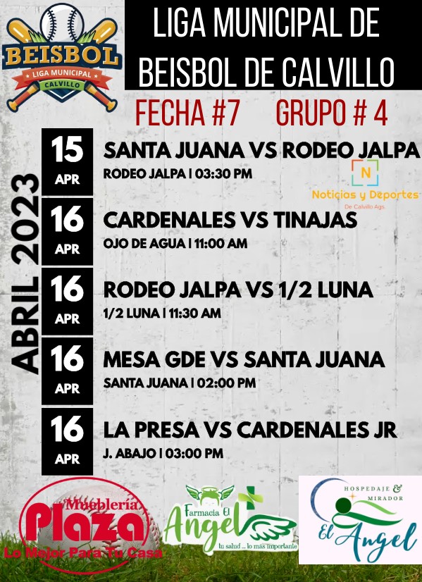 Hoy arranca la fecha 7 de la liga municipal de Beisbol de Calvillo en la 3ra fuerza y en la 2da fuerza mañana la 6ta fecha. 20 juegos se disputaran este fin de semana.