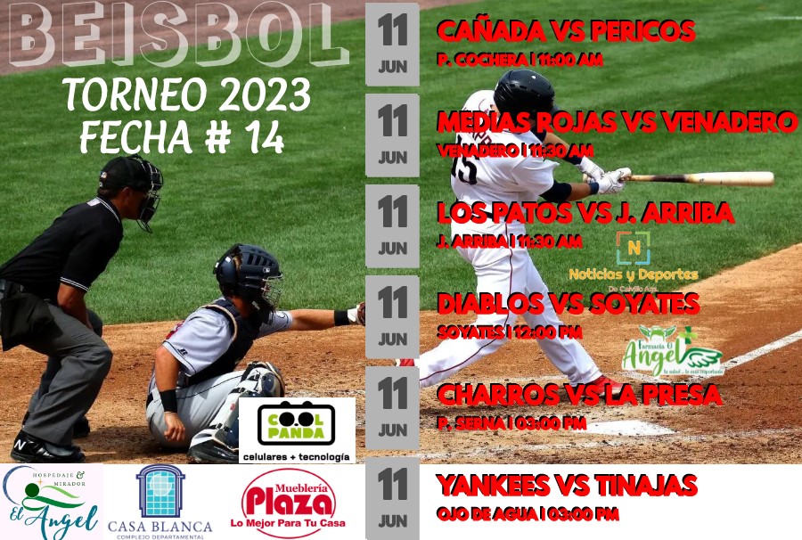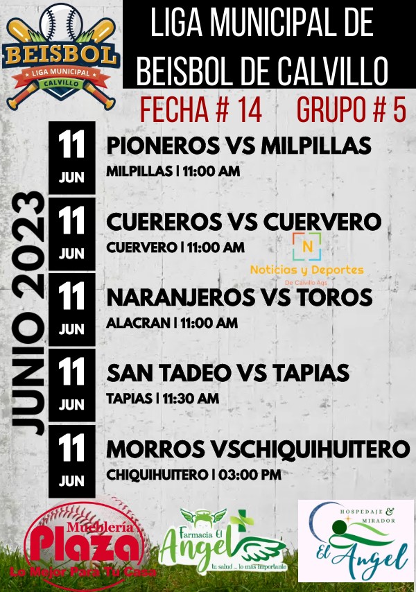 Rol de juegos de la fecha #14 de la liga municipal de beisbol de Calvillo, para disputarse el próximo domingo 11 de junio.