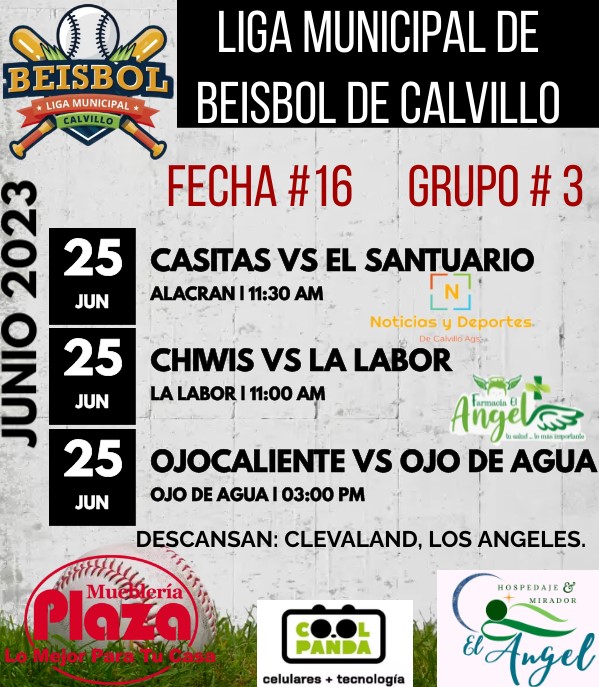 AQUI TE DEJAMOS EL ROL COMPLETO DE LA LIGA MUNICIPAL DE BEISBOL DE CALVILLO. ARRANCA EL SABADO CON UN ENCUENTRO.