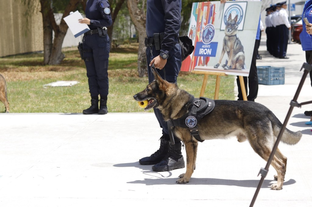 El pastor belga donado por la Embajada de Estados Unidos fue despedido en una emotiva ceremonia, en la que hizo una última demostración de sus aptitudes y se le reconoció la labor que durante años realizó en la unidad canina; Iron participó en más de 300 operativos y 100 cateos, logrando 21 detenciones gracias a sus habilidades; además, efectuó más de 100 exhibiciones, durante las cuales demostró su potencial y el trabajo que lleva a cabo esta unidad en las labores de seguridad.