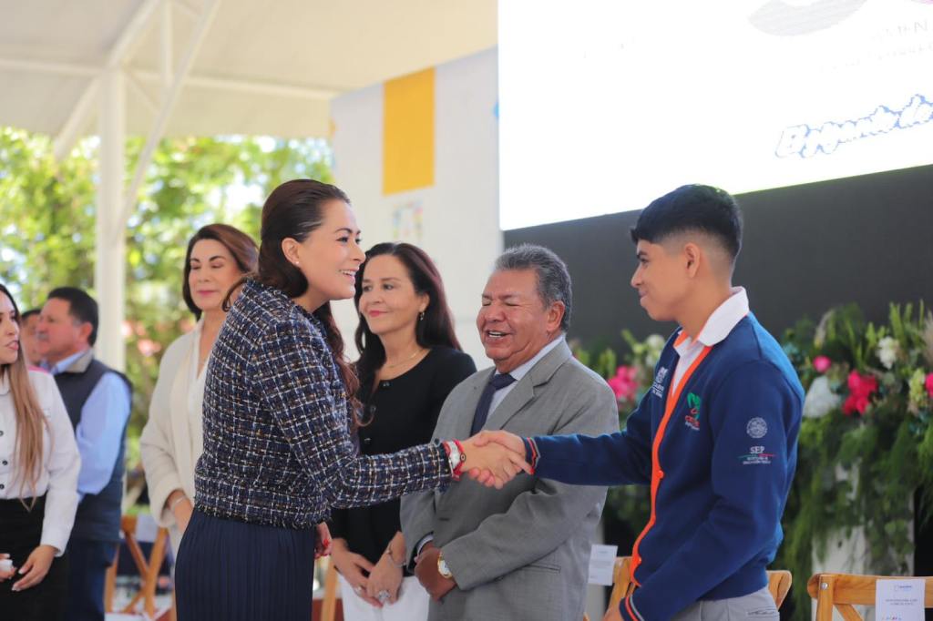 «Aprovechen la educación de calidad que les brinda esta institución; de aquí van a salir con las herramientas necesarias para conquistar el mundo, así que no dejen de soñar y luchen siempre por alcanzar sus metas», les dijo la gobernadora a las y los alumnos del Cecytea Asientos, que fue el primer plantel de este subsistema en el estado.