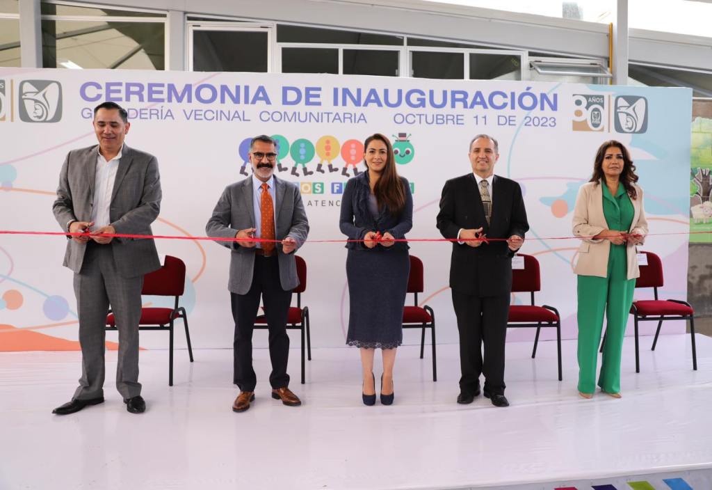 La gobernadora de Aguascalientes, Tere Jiménez, inauguró la guardería vecinal comunitaria Pasitos Felices en el fraccionamiento Periodistas, con la cual, los padres y madres de familia que habitan en esta zona de la capital, tendrán un lugar seguro donde dejar a sus hijos mientras desempeñan su jornada laboral.