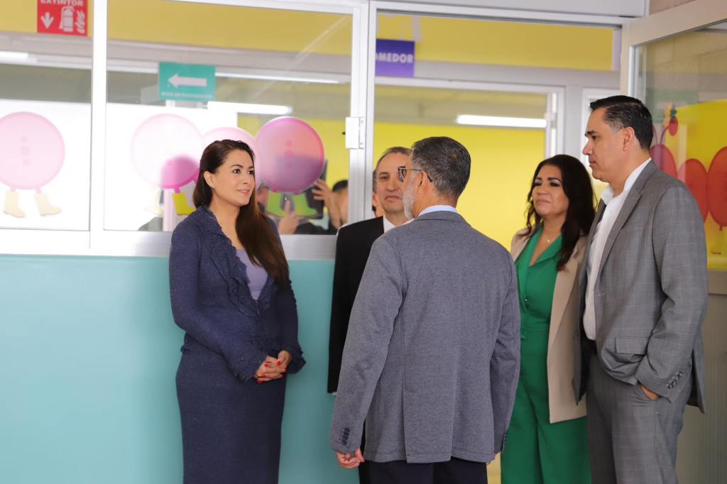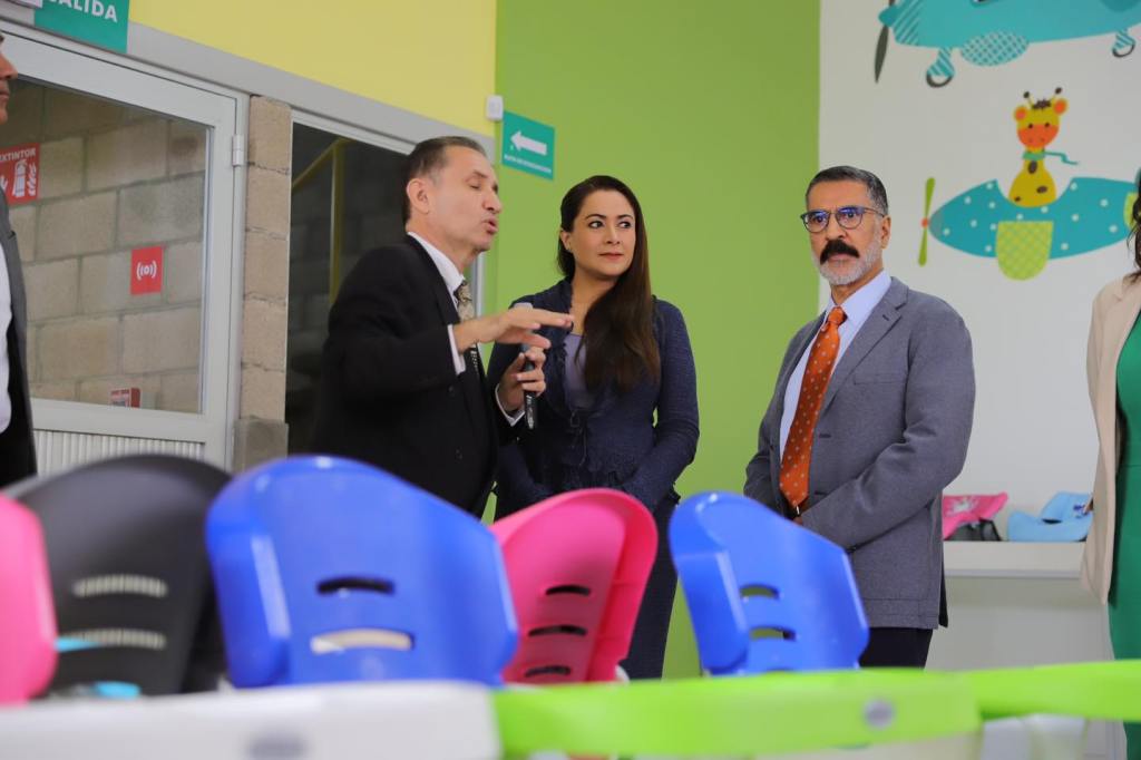 Dijo que esta guardería está afiliada al IMSS y tiene capacidad para atender a 250 niñas y niños, los cuales reciben una atención integral que incluye alimentación, educación, estimulación temprana y desarrollo cognitivo; “estamos seguros de que en este lugar las niñas y los niños crecerán felices, saludables y preparados para un futuro brillante”, comentó.