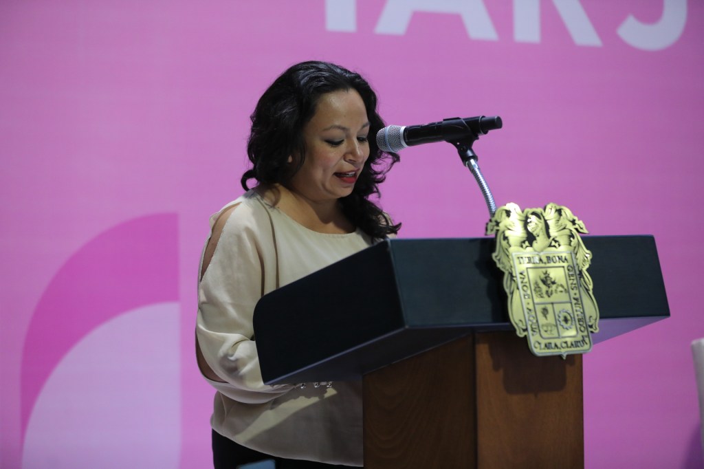En su mensaje, Tere Jiménez destacó que el objetivo de esta entrega es fortalecer el desarrollo integral de todas las mujeres del estado y mejorar sus condiciones de vida en lo personal, familiar y profesional.