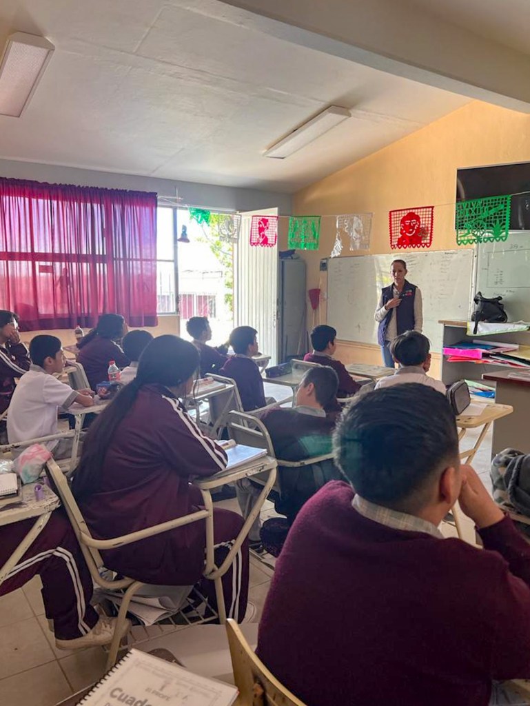 En un trabajo coordinado con el sector educativo, se realizaron las platicas de «Padres Viales» y «Niñas, niños y adolescentes infractores» en Secundaria Agustín Melgar de La Panadera, CECyTEA plantel Calvillo y en la Telesecundaria Vicente Riva Palacio del Fraccionamiento Valle de Huejúcar, con etas acciones se busca brindar información para identificar y prevenir cualquier posible conducta delictiva en las y los menores.