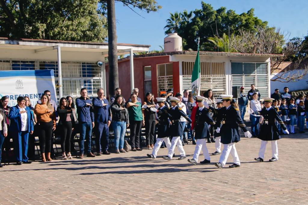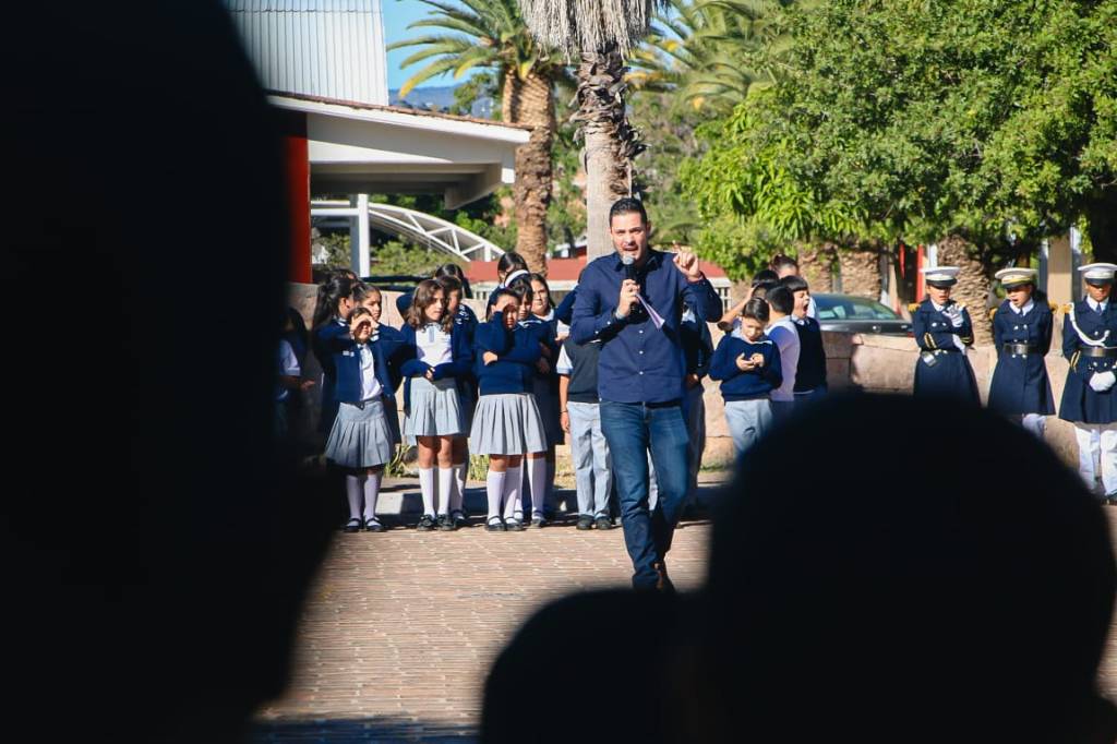El presidente, saludó a los alumnos, docentes y padres de familia, a quienes les mencionó la importancia de trabajar en equipo para lograr los objetivos propuestos y tener espacios educativos dignos, cómodos y seguros para las y los estudiantes.