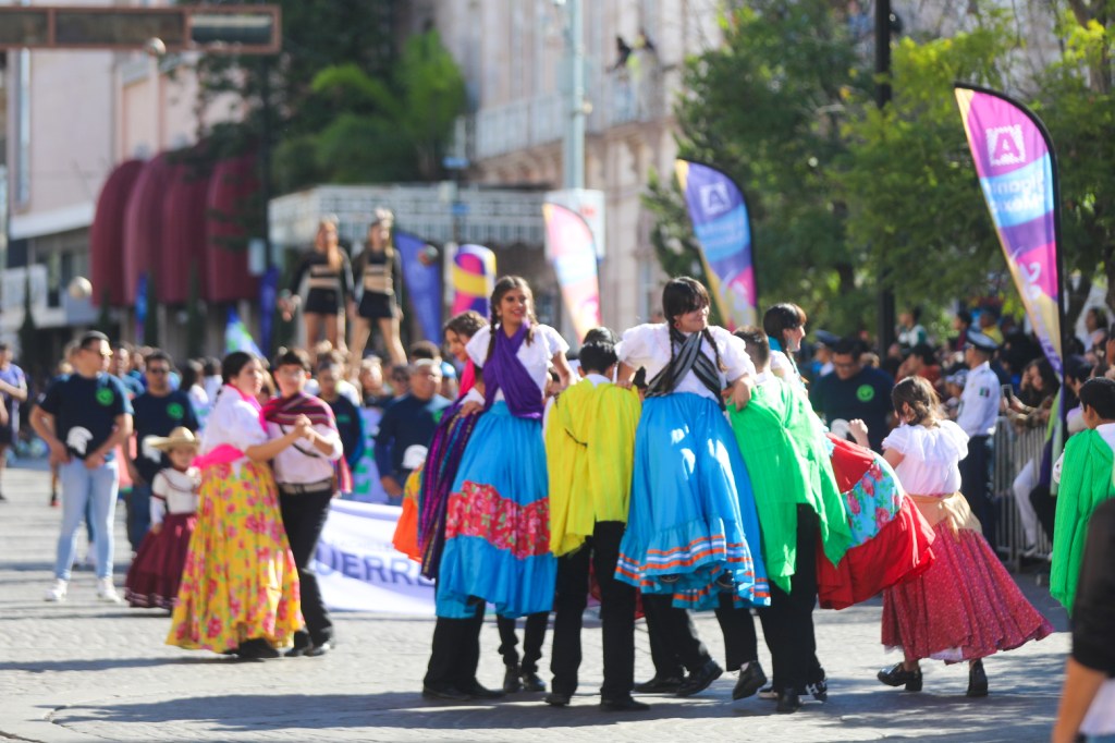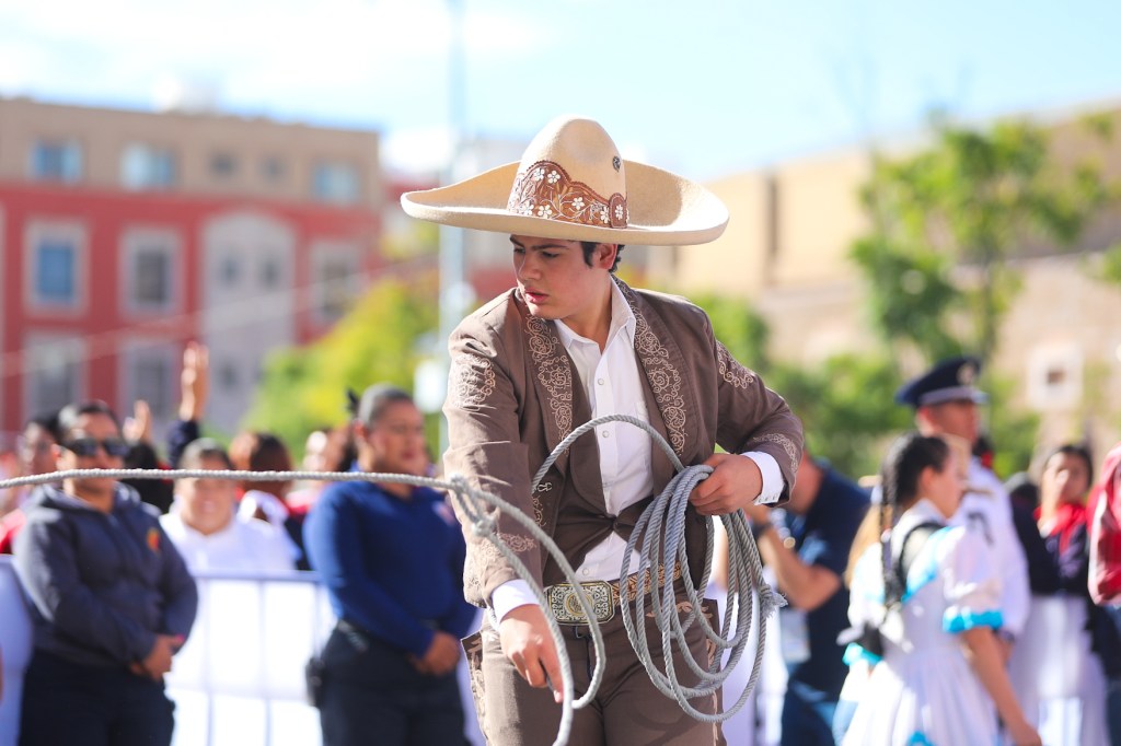 La gobernadora de Aguascalientes, Tere Jiménez, encabezó el desfile cívico-deportivo en conmemoración del 113 aniversario del inicio de la Revolución mexicana, en el que participaron más de 4 mil personas, entre estudiantes, deportistas e integrantes de las fuerzas armadas y corporaciones policiacas.