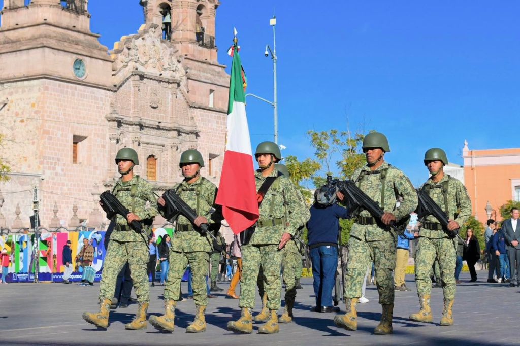 Por su parte, el comandante de la 14/a. Zona Militar, Juan Roberto Sánchez Fragoso, sostuvo que hoy, como hace 111 años, las fuerzas armadas son y continuarán siendo ejemplo de patriotismo, entrega y lealtad hacia las instituciones, al pueblo de México y al estado de Aguascalientes.