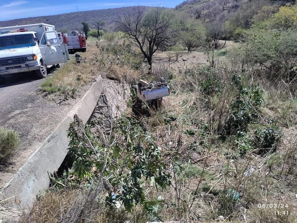 Un accidente de tránsito en el que participó un vehículo de motor fue atendido por efectivos de la Secretaría de Seguridad Pública del Estado, así como de la Policía Municipal de Calvillo y personal de la Coordinación de Servicios Aéreos de la SSPE, paramédicos del ISSEA así como bomberos municipales, en donde se reportan daños materiales y una persona policontundida.