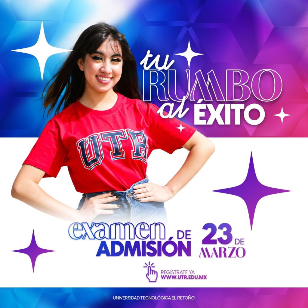 La Universidad Tecnológica El Retoño (UTR) informa que el próximo sábado 23 de marzo será el examen de admisión para estudiantes de nuevo ingreso, por lo que las y los interesados deberán registrarse antes del 21 de marzo en www.utr.edu.mx.