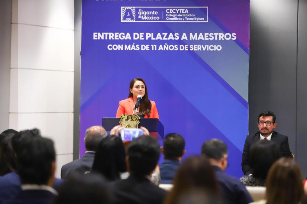 En una muestra de su compromiso con la educación y el magisterio de Aguascalientes, la gobernadora Tere Jiménez encabezó la entrega de 570 plazas a docentes y personal directivo de educación básica y media superior, con lo que hoy cuentan con una mayor certeza y estabilidad laboral.