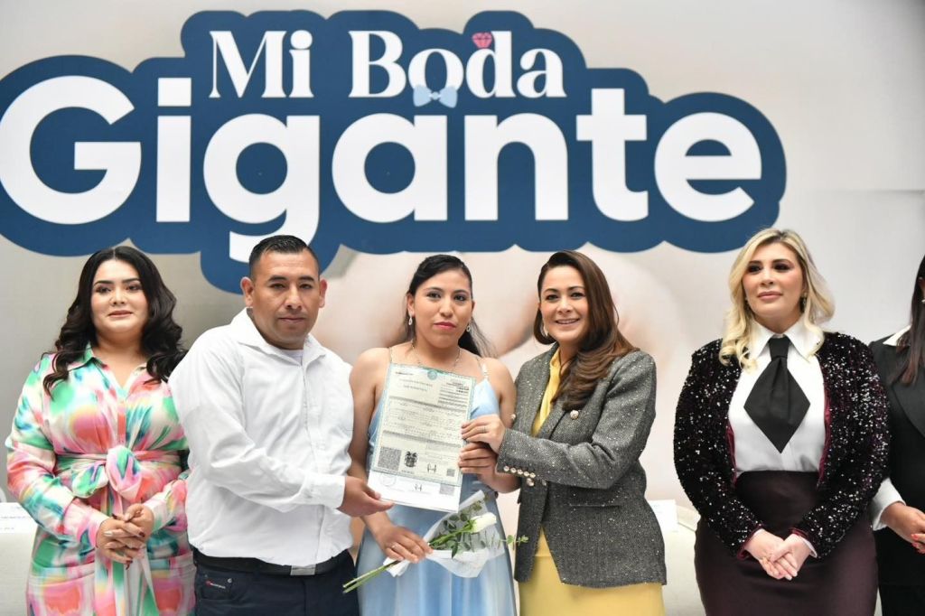 Aurora Jiménez Esquivel, primera voluntaria y presidenta del DIF Estatal, precisó que “Mi Boda Gigante” se logró gracias a la suma de voluntades de la Secretaría de la Familia, el Registro Civil, la Secretaría General de Gobierno y la Secretaría de Salud, con el propósito de brindar certeza jurídica a las parejas y a sus familias.