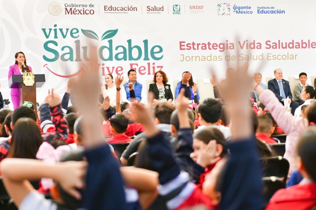 Con el objetivo de que las niñas y niños de Aguascalientes tengan las herramientas para estar sanos y puedan desempeñarse mejor en el ámbito escolar, Tere Jiménez, gobernadora de Aguascalientes, encabezó el arranque de la Estrategia de Vida Saludable, Jornadas de Salud Escolar, en la Escuela Primaria “Antonio Acevedo Escobedo” del fraccionamiento Lomas del Sur, en la ciudad capital.